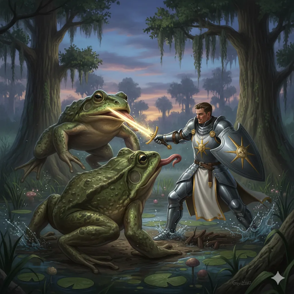 But the croaking grew louder. Closer. And when the reeds parted to reveal two massive shapes—each the size of a hunting hound, their warty hides glistening with marsh slime—Bancroft understood that “just frogs” meant something very different in the barrowlands.
