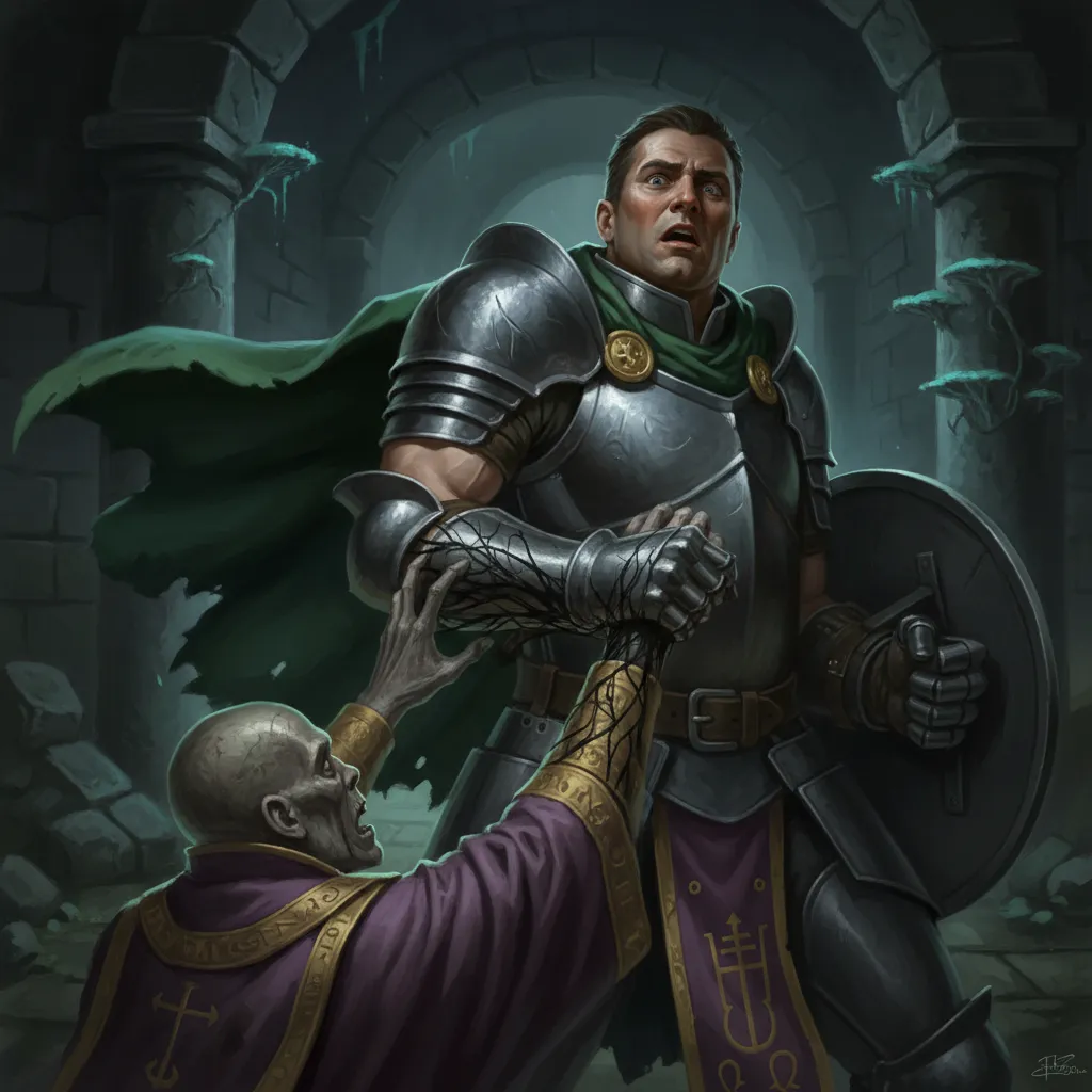 He knew the way. He had been here before — after the rat bites, after the infection that had nearly killed him, after every time the barrow put something in his blood that Sylvanus couldn’t or wouldn’t clean out. The priests received him with the expression of men who saw a lot of wounded adventurers and had stopped being moved by it. They had a cure. The cure cost sixty gold pieces.