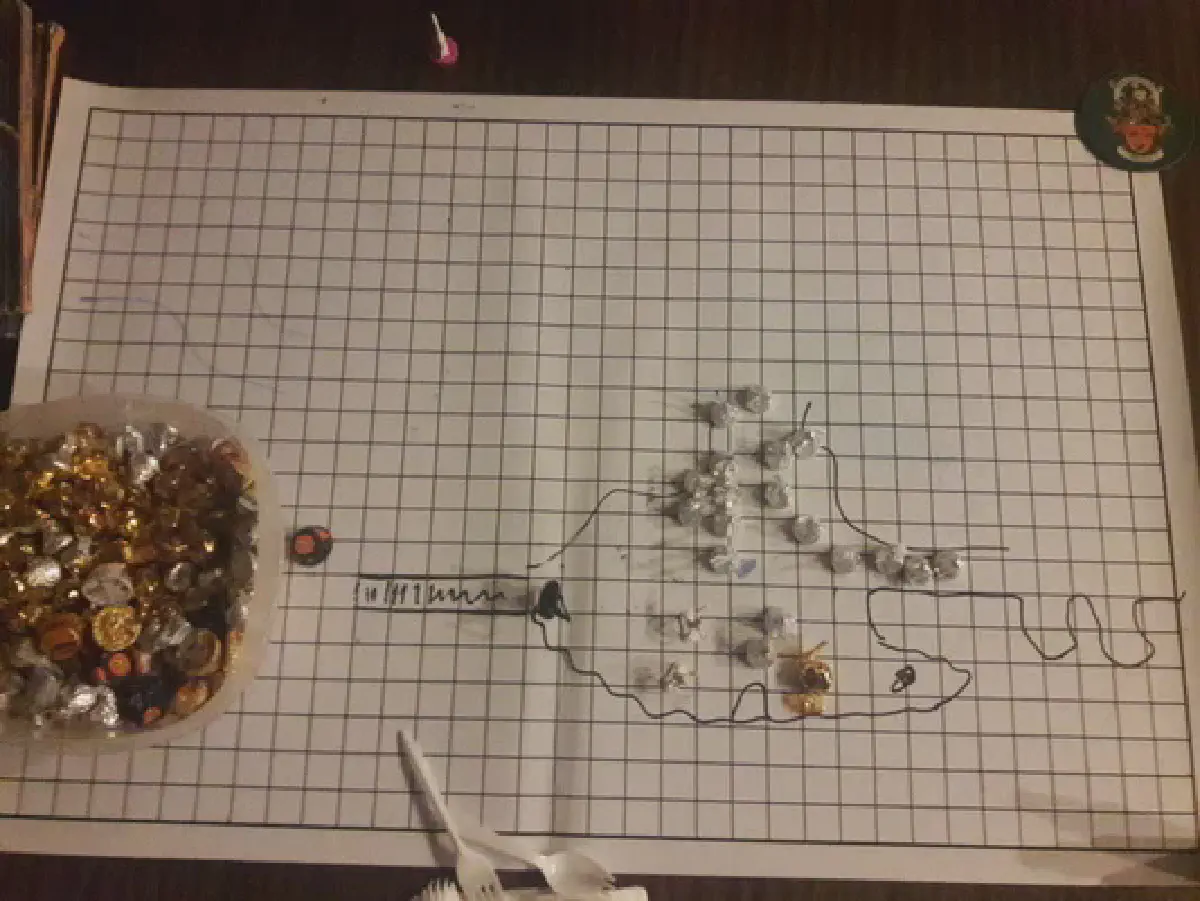 They found a second garbage pit, covered in fungus. This confirmed the impression that they had earlier, that their maps were a little bit off. Barron grabbed the oil lamp he had been planning to use on the mudtiger babies, backed away from the garbage pile, and … proceeded to slam dunk the lamp into the pit as he tried to burn it (natural 1 trying to throw the lamp). The weird fungi burst into a cloud of airborne spores. Barron hacked and coughed as he stumbled out of the room. Norsk was able to identify the fungi as bearing a dangerous disease, and the yellow potions the party had found earlier as likely being a treatment for it. Barron immediately drank one.