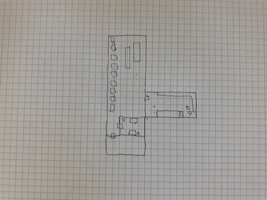 Beyond lay a much larger room, and a striking difference from the rest of the house. The area is well lit, with multiple torches mounted on the wall. 10 cots line the south wall, and a table with a mess of plates and silverware (not actual silver). Footlockers at the end of each cot hold clothes and small personal knickknacks. To the left of the entry from the basement of the house are a pair of doors. The first door, to the left again, is unmarked. The other is barred and marked with the word “DANGER” in chalk. Stored against one of the walls is a large bolt of silk cloth and two fresh casks of brandy, along with several opened casks, and a variety of food stores commonly used aboard sailing ships.